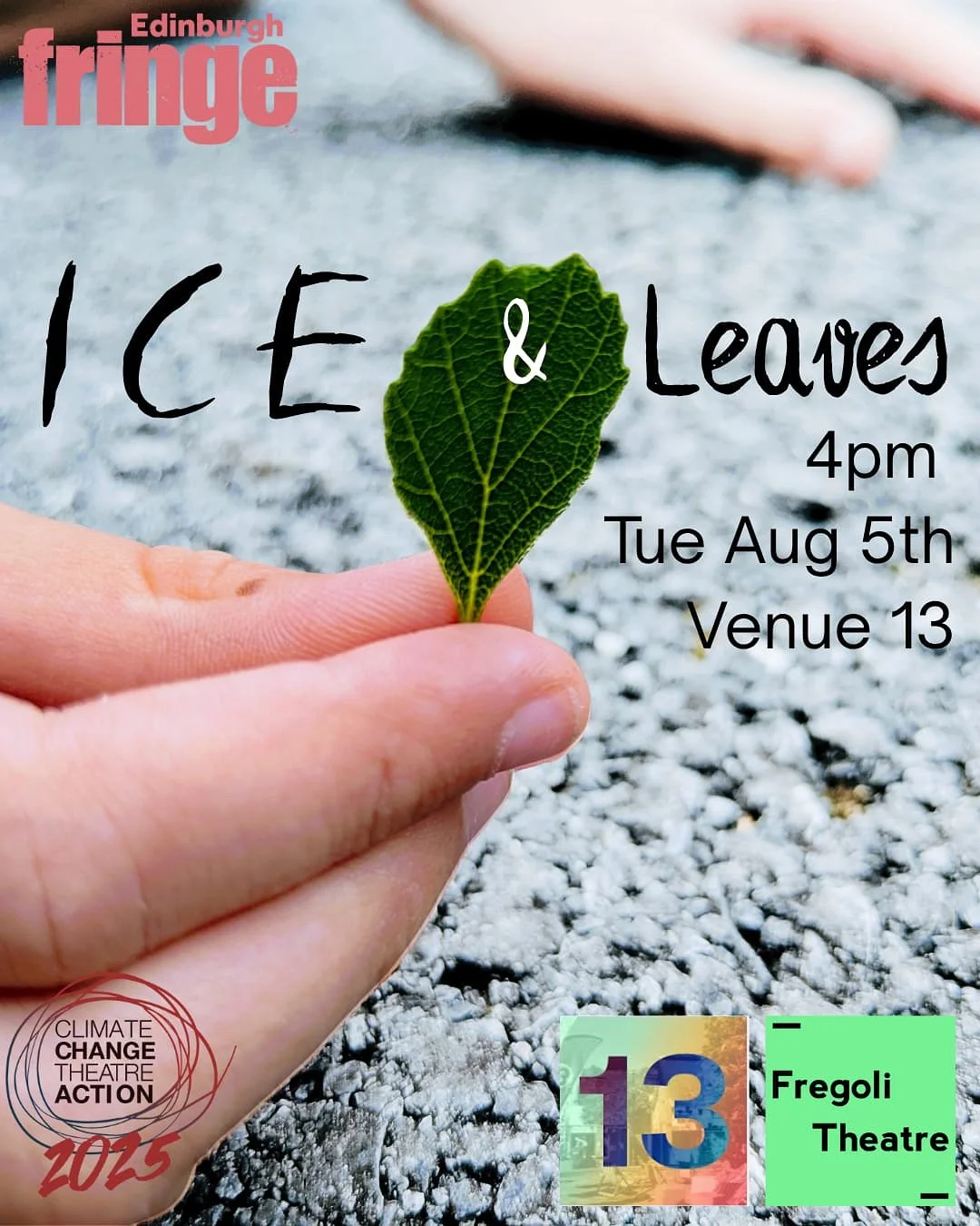 Fregoli Theatre is returning to Edinburgh Fringe this August! Fregoli presents Ice and Leaves, a series of 5 short plays around the theme of climate change with Climate Change Theatre Action, Centre for Sustainable Practice in the Arts and Venue 13 for one performance only at 4pm, Tuesday 5th August, 2025 in Venue 13.